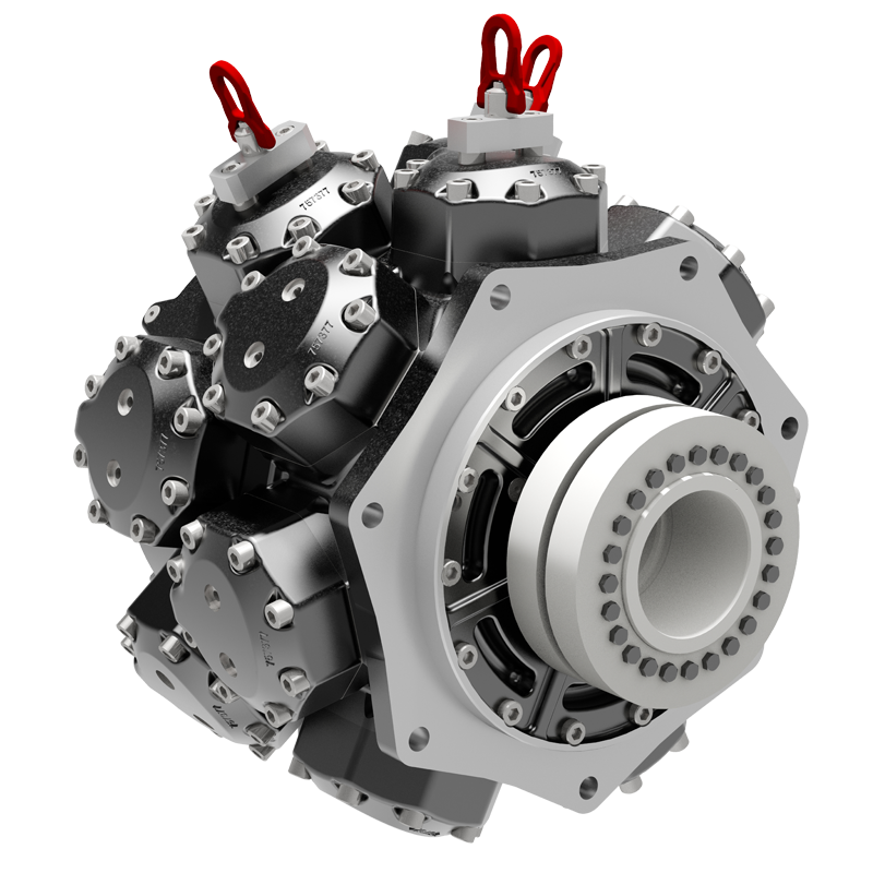 MRT motors are combined into 5 different frame sizes, corresponding to 23 standard displacements available, from 7100 cc/rev to 53000 cc/rev.